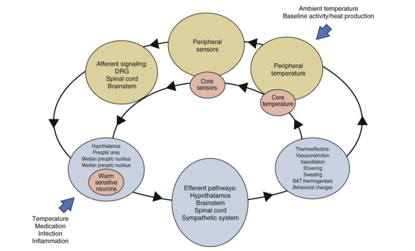 | Cause | Pyrogens (LPS, IL-1, TNF) | Heat exposure, drugs, malignant hyperthermia |