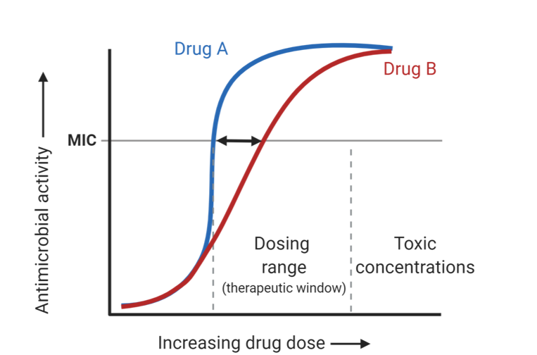 The shape of the antibiotic concentration versus antimicrobial effect curve is important for dosing