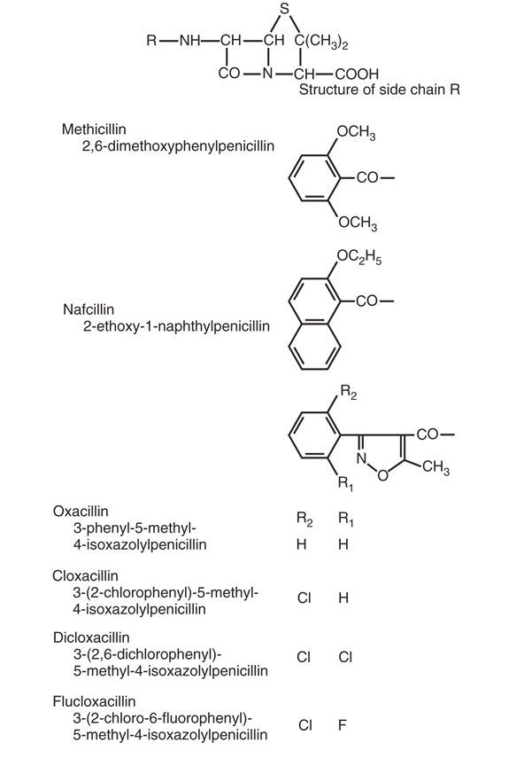 Nafcillin, Oxacillin, Dicloxacillin, Flucloxacillin