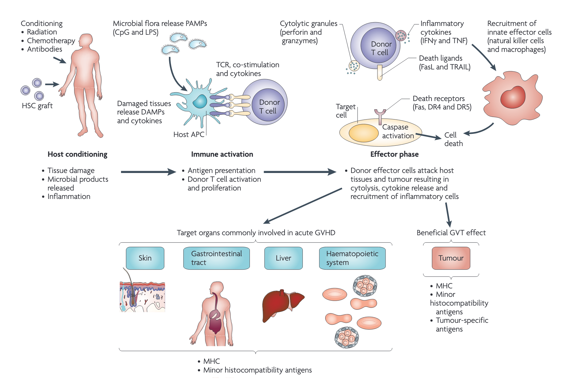 | Allogeneic — haploidentical | Peripheral blood, Bone marrow | Half-matched family member (parent, child, sibling) | Very severe; requires intensive T-cell depletion or post-transplant cyclophosphamide |