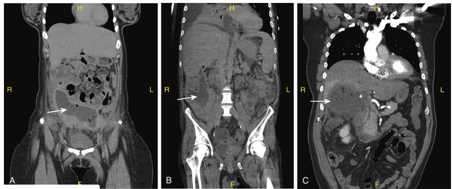 | Intraabdominal source | None | Present (perforation, ischemia) |