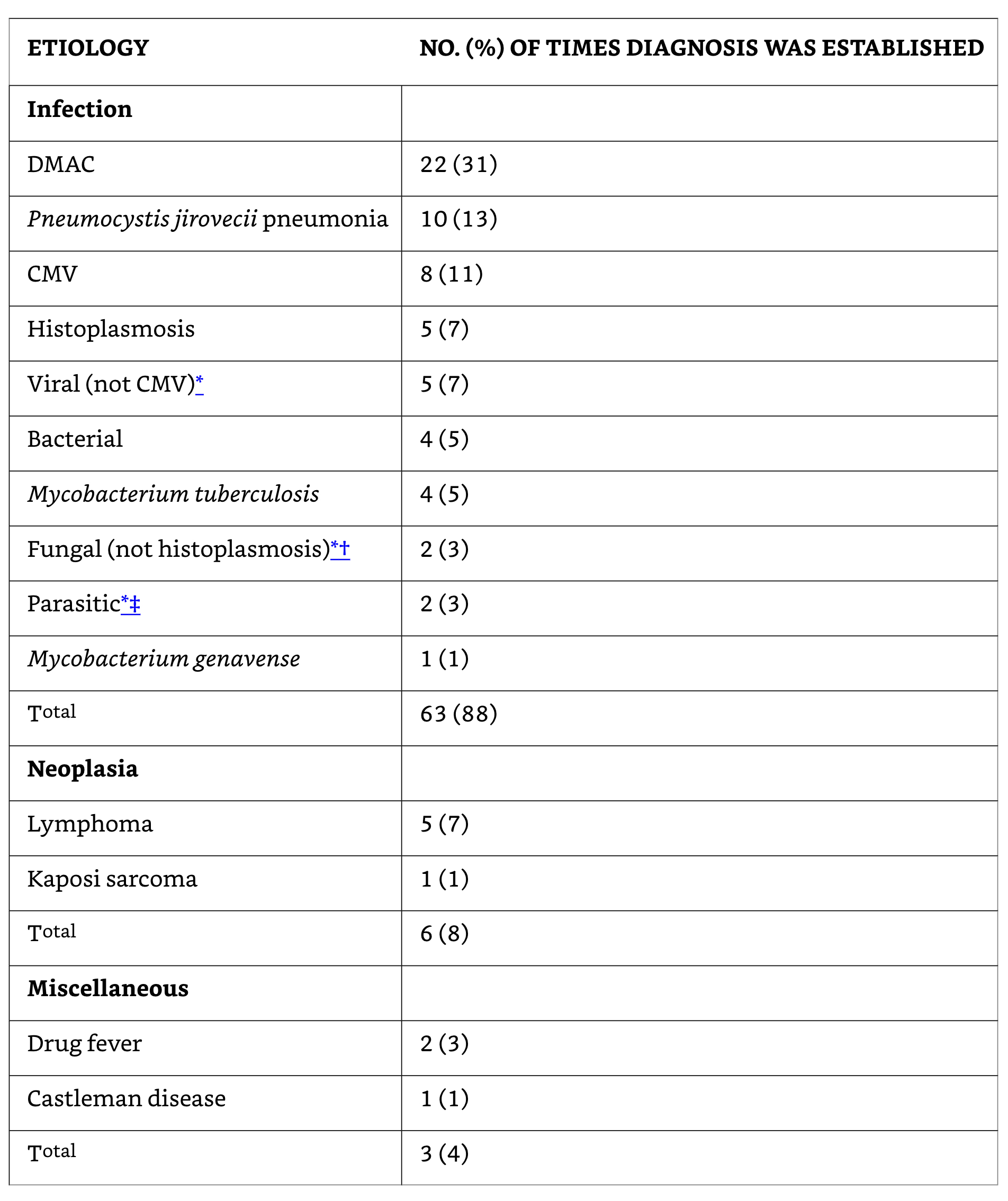Fever >2 separate outpatient visits with diagnostic investigations or