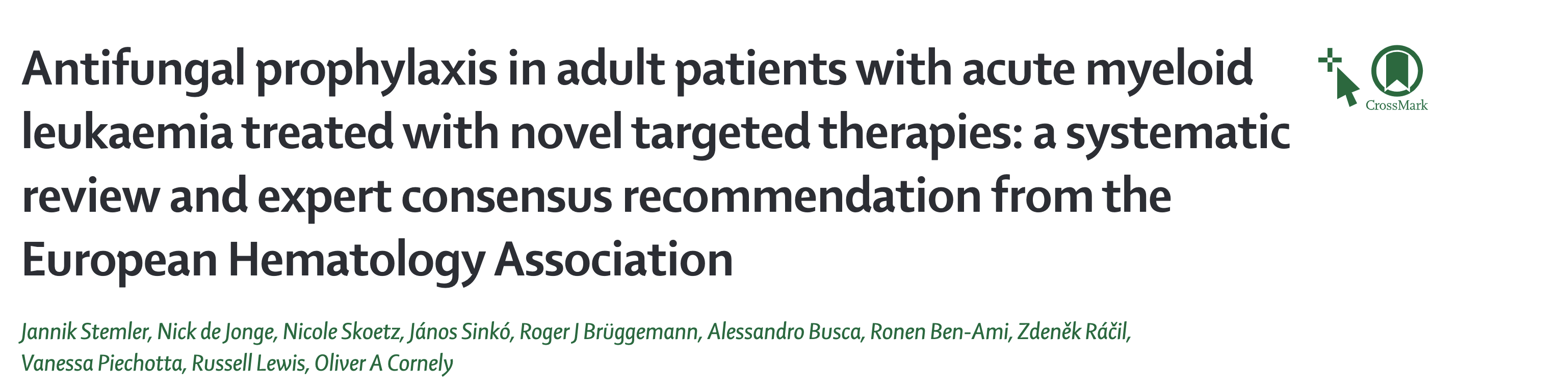 Stemler J, de Jonge N, Skoetz N, Sinkó J, Brüggemann RJ, Busca A, et al. Antifungal prophylaxis in adult patients with acute myeloid leukaemia treated with novel targeted therapies: A systematic review and expert consensus recommendation from the