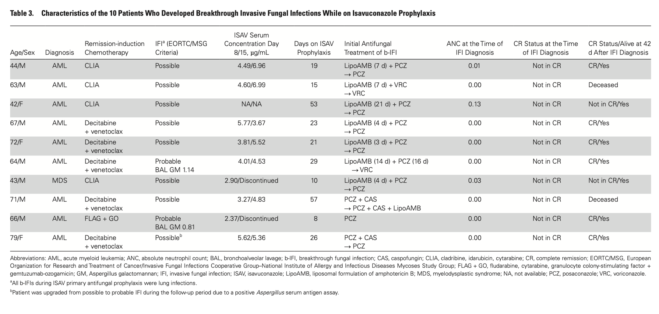 Bose P, McCue D, Wurster S, Wiederhold NP, Konopleva M, Kadia TM, et al. Isavuconazole as