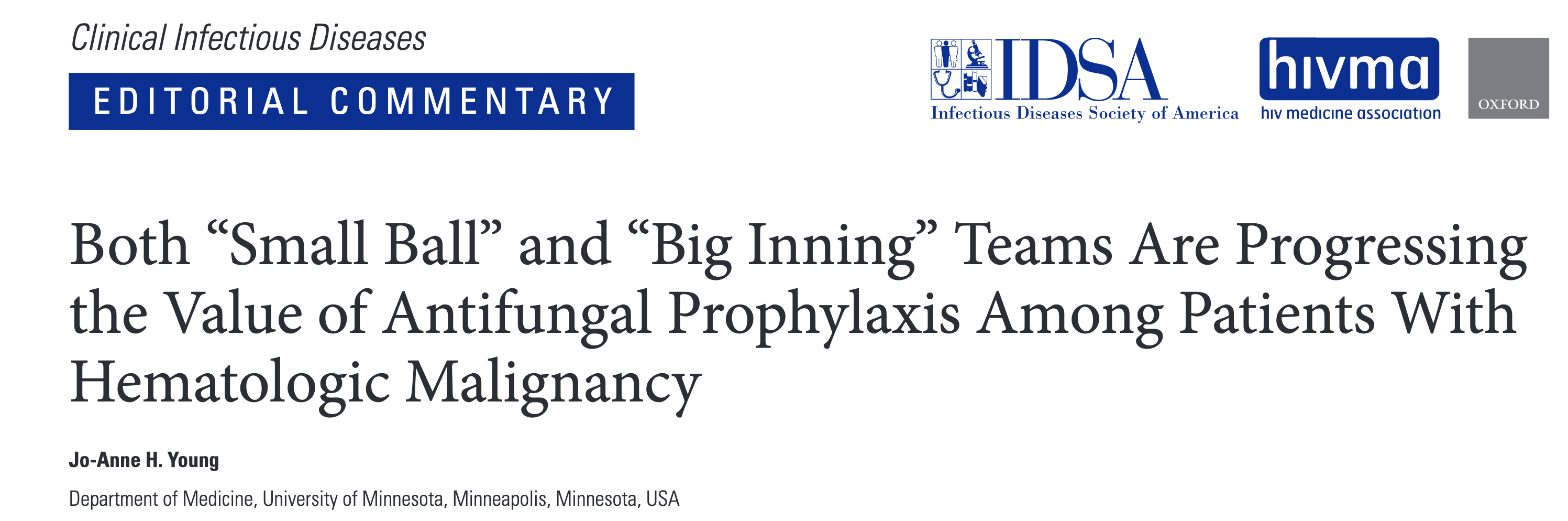 “Big inning” teams are progressing the value of antifungal prophylaxis among patients with hematologic malignancy. Clinical Infectious Diseases: An Official Publication of the Infectious Diseases Society of America 2021;72:1764–6.