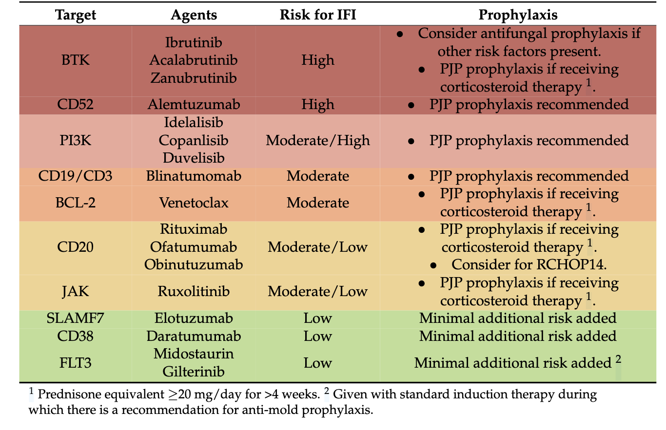 Little JS, Weiss ZF, Hammond SP. Invasive fungal infections and targeted therapies in hematological malignancies. Journal of Fungi 2021;7:1058.