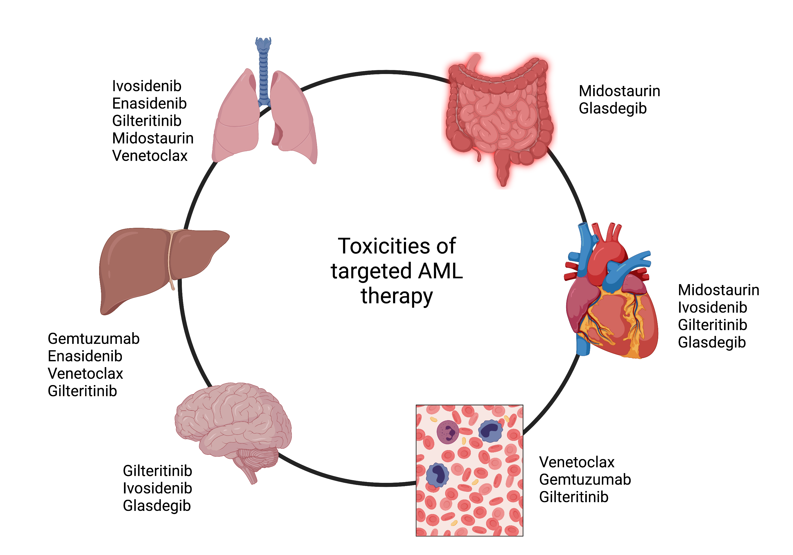 Wang ES, Baron J. Management of toxicities associated with targeted therapies for acute myeloid leukemia: When to push through and when to stop. Hematology / the Education Program of the American Society of Hematology American Society of Hematology Education Program 2020;2020:57–66.